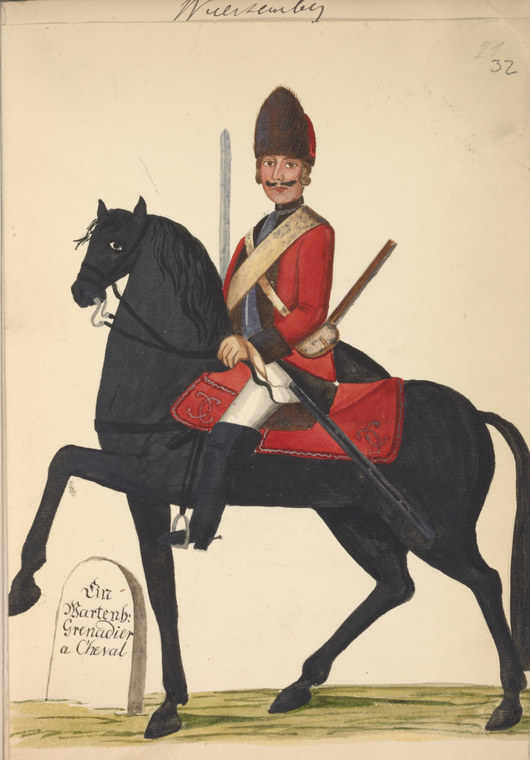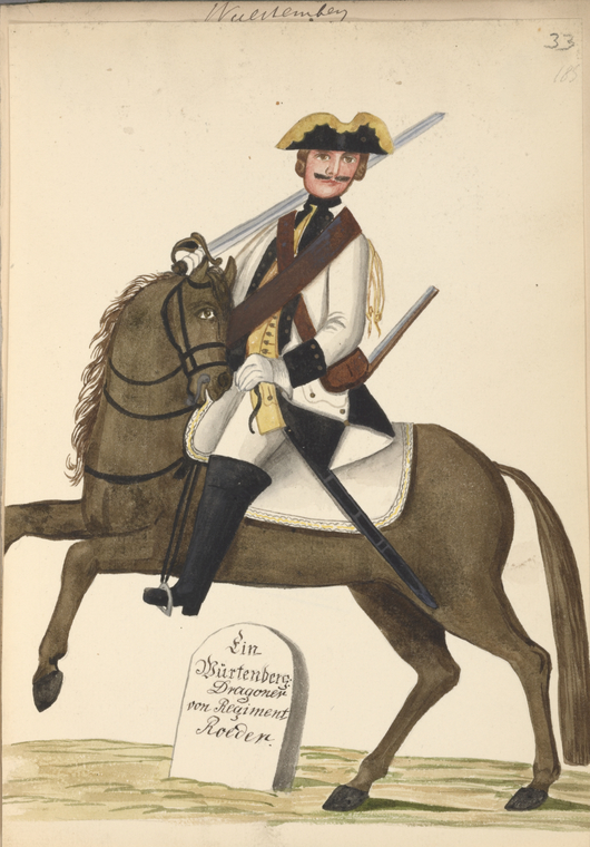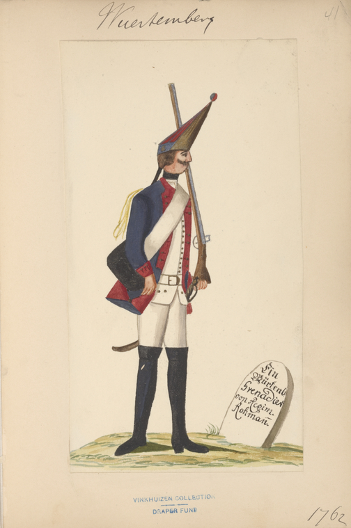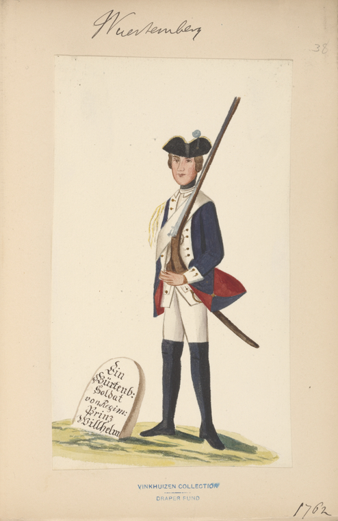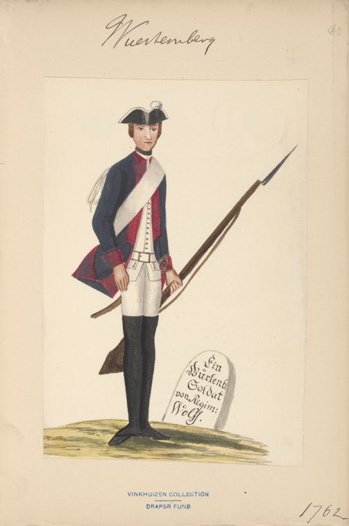 Württemberg Military Regulations.Infanterie:ca. 1750 Engelbrecht, Martin; Wachsmuth, Jeremias. Manuale oder Handgriffe der Infanterie, Wie solches a[nn]o 1735, nach dem damahlig alt Kayserl. Würtenb. Regiment zu Fuß bey dem Löbl. Fürstenb. Schwäbische[n] Crayß Regiment eingeführet worden. ca. 1750. Title page + 27 plates. : http://reader.digitale-sammlungen.de/resolve/display/bsb11198748.html1757 Reglement für die löbliche Infanterie-Regimenter des Schwäbischen Creyses; worinnen enthalten die Evolutiones, das Manual, und die Chargirung, und wornach sämtliche Officiers sich sonsten zu verhalten haben ... 1757. 160 S. :1757 Neue Eintheilung und Berechnung der Prima-Plana-Gelder bey denen auf 3. Simpla gesetzten Schwäbischen Creyß-Infanterie- und Cavallerie-Regimentern, vom 1.ten Junii 1757. anfahend Mit angehängter Berechnung der Hautboisten-Gelder. 1757. 6 p. : http://reader.digitale-sammlungen.de/resolve/display/bsb10636462.html1757 Von Gottes Gnaden Carl, Herzog zu Würtemberg und Teck, ... Unsern Gruß zuvor, Lieber Getreuer ! Welchergestalten sowohlen über das Zellten- und Artillerie-Fuhrwesen, als auch über die Verpflegung derer sämtl. Schwäbischen Creyß-Trouppen die nöthige Admodiations- Contracte errichtet und denen Entreprenneurs der Einkauf derer Pferde, Victualien, ... in dem Creyß ohne Zoll oder andere Imposten zugestanden worden, das hast du aus denen ... Creyß- Patenten, vermög beyliegender gedruckten Copeylichen Anlagen, des mehrern zu ersehen. 1757. : http://reader.digitale-sammlungen.de/resolve/display/bsb11136643.htmlFrederic, Jacques André. Etat des Trouppes de S.A.S. Monseigneur le Duc de Virtemberg et Theck sur pié en 1759. 1759. :1793 Exercir-Reglement für die Infanterie- und Kavallerie-Regimenter der Fürsten und Stände des löbl. Schwäbischen Kreißes. 1793. 146 S., 1 Bl. : graph. Darst. : http://idb.ub.uni-tuebingen.de/diglit/Ef471794 Provisorische Instruktion für die Officiers der Landmiliz im Herzogthum Wirtemberg. 1794. : http://idb.ub.uni-tuebingen.de/diglit/LIX3_1/0001 Liste der Compagnie der Bataillons Landmiliz. : http://idb.ub.uni-tuebingen.de/diglit/LIX3_1/phys000171794 Exercier-Reglement für die Landmiliz des Herzogthums Wirtemberg. Stuttgart: Cotta, 1794. 56 p. : http://idb.ub.uni-tuebingen.de/diglit/LIX3_2/00011794 Eintheilung und Berechnung der Prima-Plana-Gelder bei den auf 4 1/2 Simpla gesezten Schwäbischen Kreis-Infanterie- und Cavallerie-Regimentern Vom 1. Jun. 1794 an, einzuführen. 1794. : http://reader.digitale-sammlungen.de/resolve/display/bsb10636463.html1800 Instruktions-Punkte für die Herzoglich-wirtembergische Infanterie. 1800. 70 S. : Universitätsbibliothek1809 Exerzier-Reglement für die königlich württembergische Infanterie : mit den dazu gehörigen Plänen / [gegeben von Friedrich, König von Württemberg, den 16. Februar 1809]. 1809. Teil: 1: 152 S. : 41 Pläne. :1810 Dienst-Reglement für die königlich-württembergische Infanterie. [erlassen den 1. Juli 1810]. 1810. : Dienst-Reglement für die Königlich Württembergische Infanterie. 3 Bde. Stuttgart 1809-1810: 1: Vom Dienst überhaupt, und insbesondere vom Dienst im Frieden. 1810. 320 S. : 2: Von dem Dienst der Infanterie im Felde. 1809. 194 S. : [includes 41 plates] 3: Plates. [Schema zu vol. 1]1818 Vorschrift für den Innern Dienst der Infanterie. Stuttgart 2 vols. 1818. : Textband: 400, [1] S. : Schema: 36 Blatt. :1819 [Exerziervorschrift Infanterie wuerttembergische]. 1819. "pp. xx, 68, 515, - 99." : :1819 Auszug aus der Exerzier-Vorschrift für die Königl. Würtemb. Infanterie : für die Unteroffiziere. 1819. :1824 Bajonet-Fechtlehre für die Königlich Württembergische Infanterie. 1824. 62 S. : https://www.e-rara.ch/doi/10.3931/e-rara-296941830 Abänderungen der Exerzir-Vorschrift für die königlich württembergische Infanterie, und Nachträge zu derselben. 1830. : https://www.e-rara.ch/doi/10.3931/e-rara-299231849 Vollständige Exercir-Vorschrift für die Württembergische Bürgerwehr zu Fuss. 1849. 254 p. : https://books.google.com/books?id=4msGKWFh-SACCavalerie/Reuterei:Exercir-Reglement für die Infanterie- und Kavallerie-Regimenter der Fürsten und Stände des löbl. Schwäbischen Kreißes. 1793. 146 S., 1 Bl., graph. Darst. : http://idb.ub.uni-tuebingen.de/diglit/Ef47/phys00074Instruktionspunkte für die herzoglich-wirtembergische Cavallerie. 1802. 261 S., [1] Bl. :1819 Innerer Dienst der königlich württembergischen Reiterei. Stuttgart: Mäntler, 1819. Textbd. & Tabellenbd ; Textbd.: 13,5 cm ; Tabellenbd.: 17,5 cm. [Textbd.: Titelblatt, 288 S. ; Tabellenbd.: Schema Nr. 1-60]:https://www.e-rara.ch/zut/doi/10.3931/e-rara-30013 [Fehlpaginierung Bd.1: nach S. 80 folgen S. 65 ff] :1820 Bismark, Friedrich Wilhelm von, 1783-1860. Felddienst-Instruction für Schützen und Reuter der Königlich. Württembergischen Reuterei / entworfen von dem General Grafen [Friedrich Wilhelm] von Bismarck Verfasser: Bismarck. Erste und zweyte Ausgabe 1820. Dritte Auflage 1821. 92 S.: 3rd ed. 1821. 92 p. : https://catalog.hathitrust.org/Record/009723168 https://books.google.com/books?id=TkoVAAAAYAAJ1820 Plane zu der Exerzier-Vorschrift für die Königliche Württembergische Reuterey. 1820. :1822 Exerzier-Vorschrift der königlich würtembergischen Reuterei / Wilhelm I., Württemberg, König. - Stuttgart : Mäntler, 1822. 514 S. :Artillerie, etc.:1779 Rösch, Jakob Friedrich von. Säze aus der Artillerie / welche ... unter dem Vorsiz des Hauptmann Rösch ... in der Herzoglichen Militair-Akademie öffentlich vertheidiget werden sollen. Stuttgart: Cotta, 1779. [4] sheets. : https://doi.org/10.11588/diglit.294571774: Der ... Jahrs-Tag der Herzoglich-Würtembergischen Militair-Akademie zu Stuttgart (4.1774 - 5.1775): http://digi.ub.uni-heidelberg.de/diglit/jahrs_tag_militair_akademie_stuttgart1806 Militair-Conscriptions-Ordnung für die Königlich Württembergische Staaten. 1806. 28 ungez. Bl. [33 Bl.]: In: Kapff, Sixt Friedrich Jakob von. Sammlung der württem