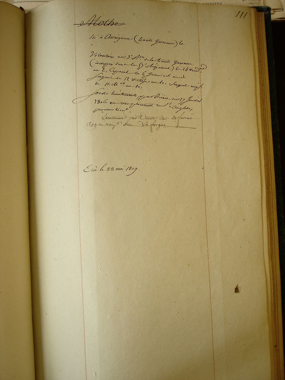 1e Bat./ 1e Co.Fusilier Augustin Gregoize: Died in the Military hospital of Strasbourg on 15 Juily 1810. (Shot in the left thigh)
